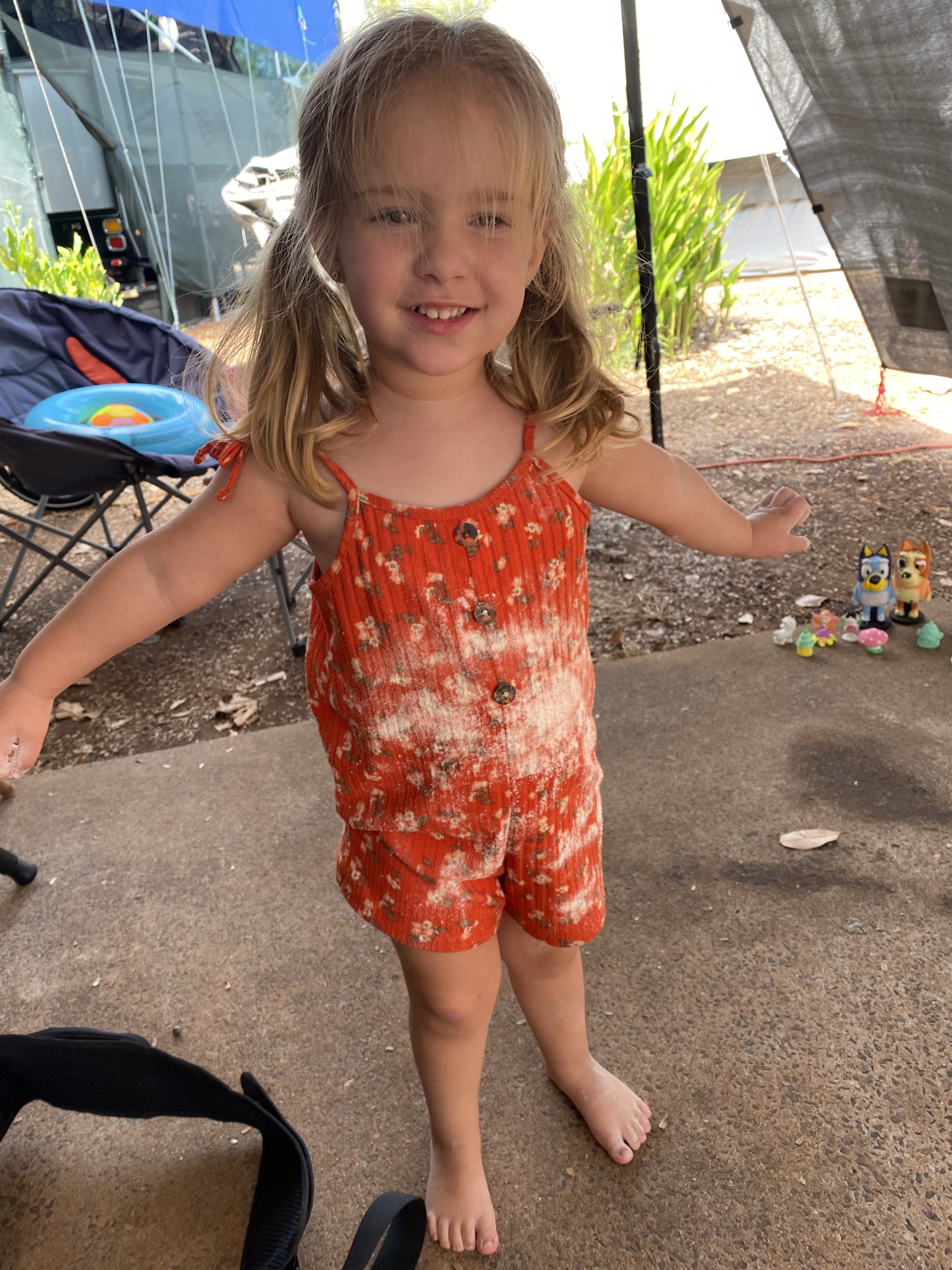 Eva returned to work. Madeline helped daddy crumb the schnitzels.